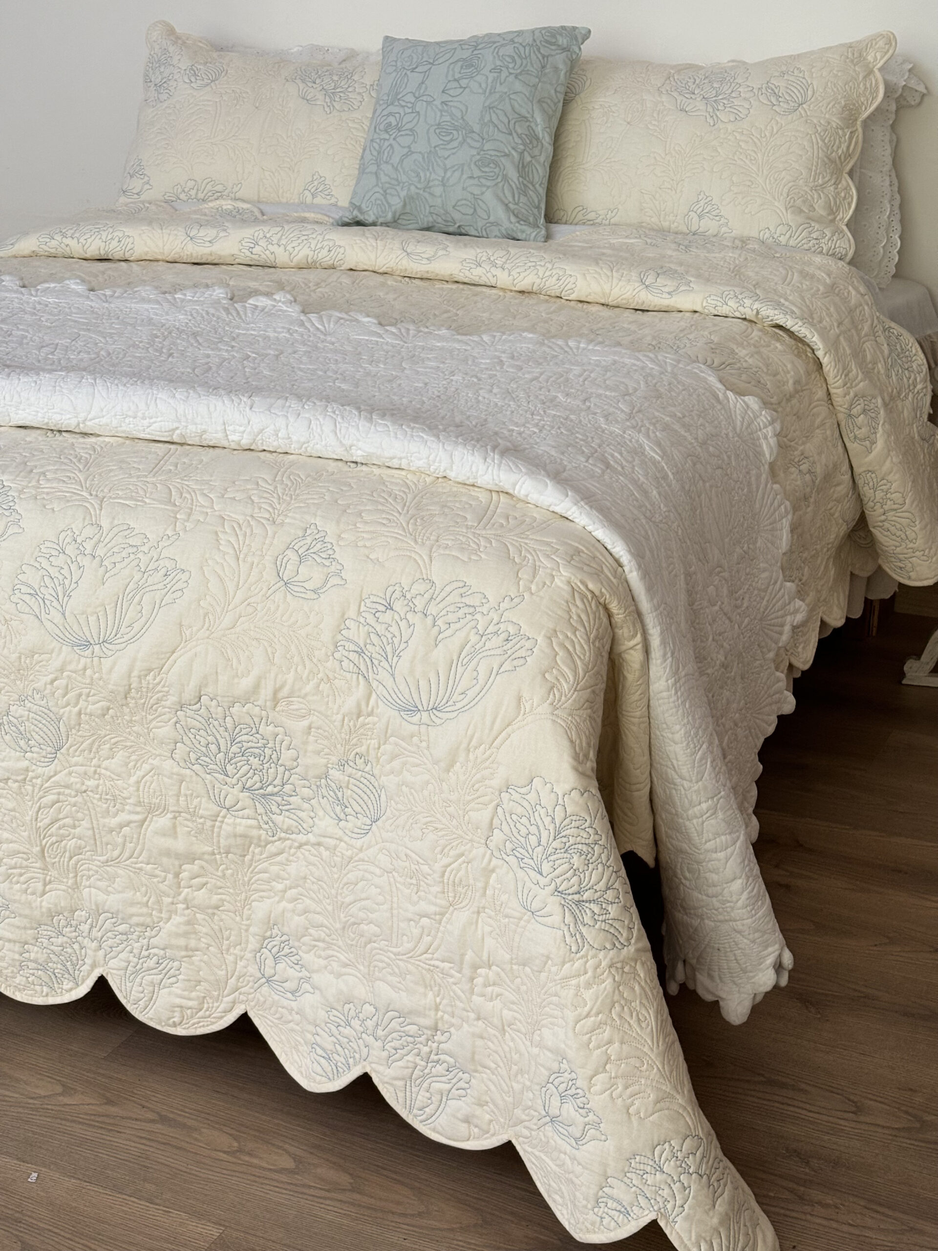 Quebec Garden Embroidered Shams set of two – Lustre Pearl – King